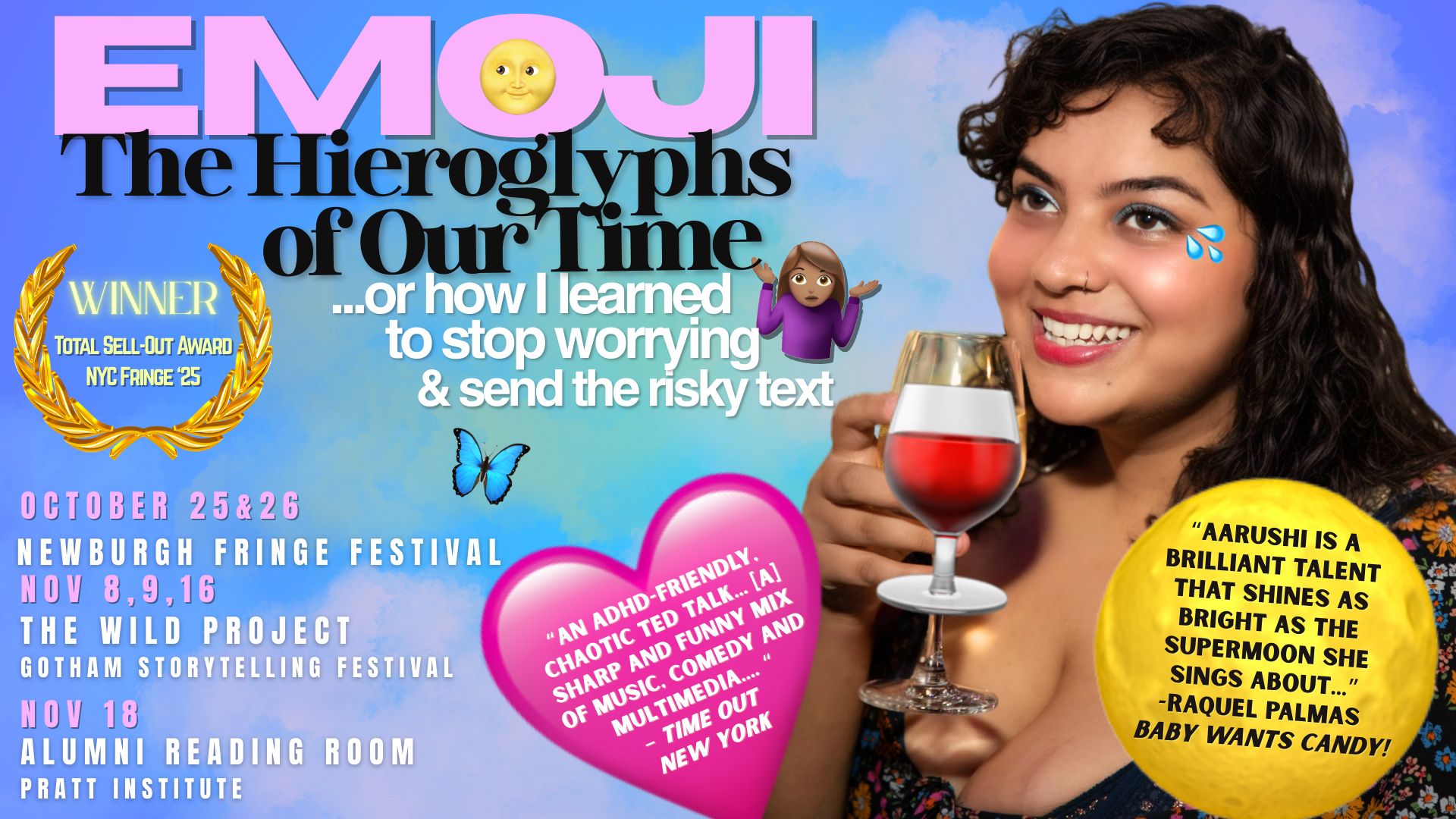 I haven’t done my solo show, EMOJI: The Hieroglyphs of Our Time, or how I learned to stop worrying and send the risky text 🤷🏽♀️ since its SOLD-OUT RUN at the NYC Fringe Festival — thanks to all of you who supported me and made it great. 💛